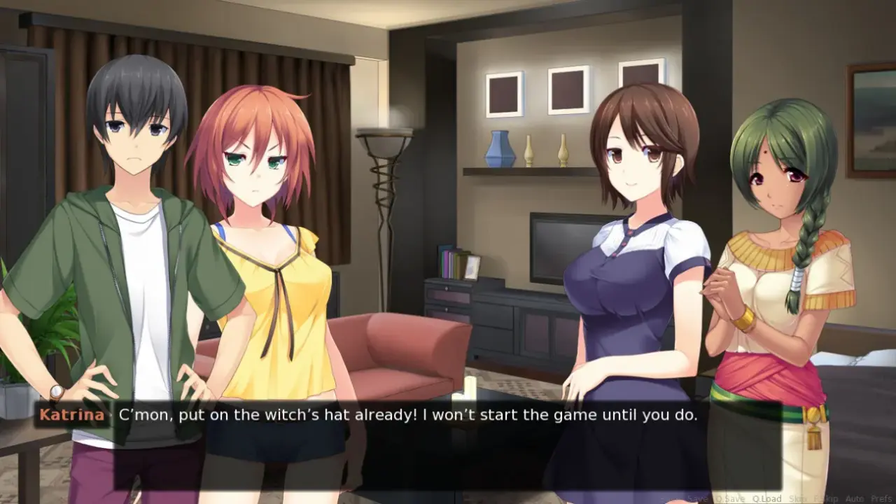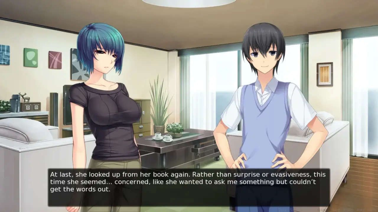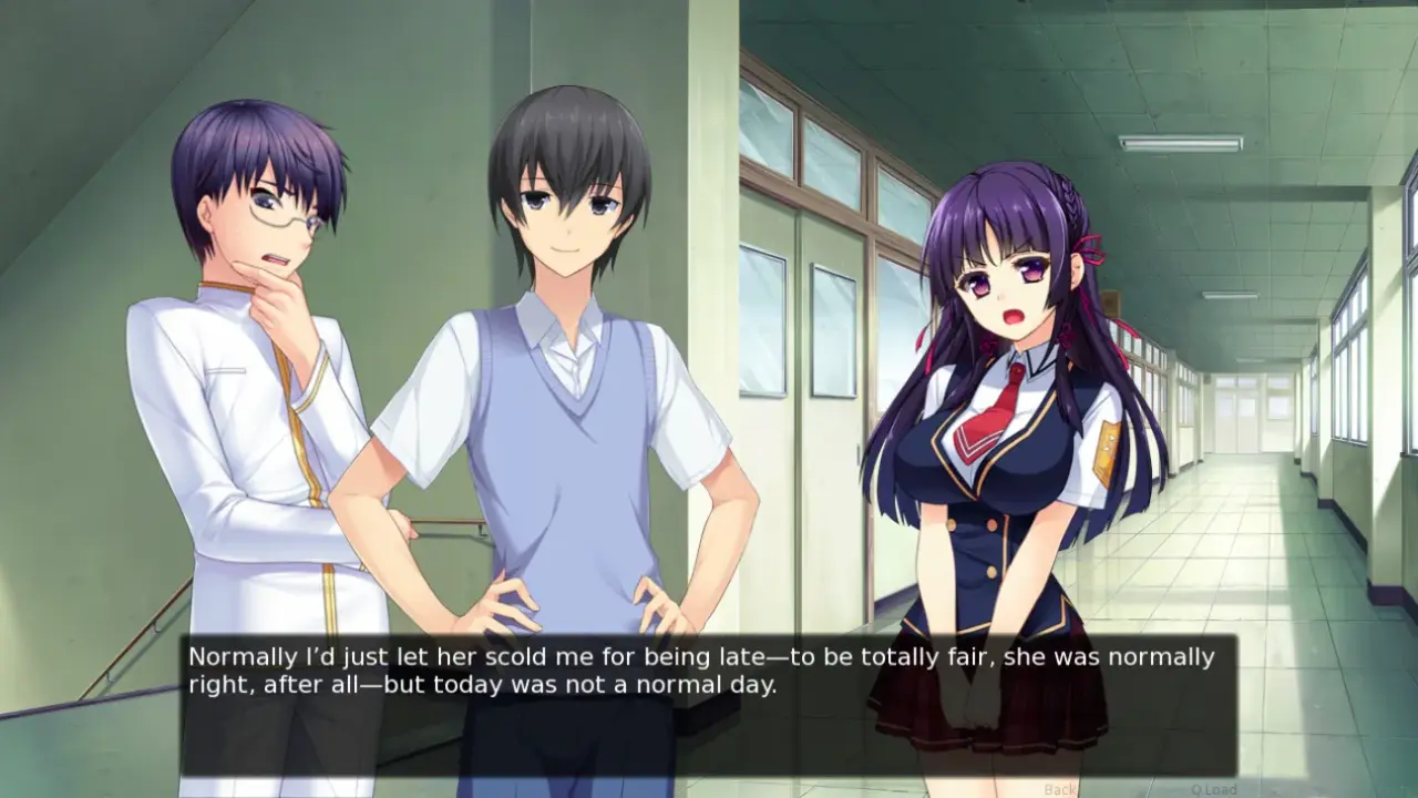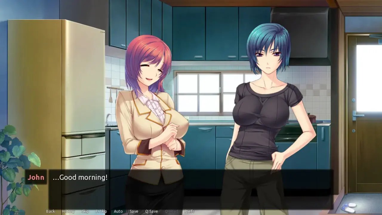 The story is told through the perspective of the main character John, using a first person narrative while using a traditional text and sprite-based visual novel model.